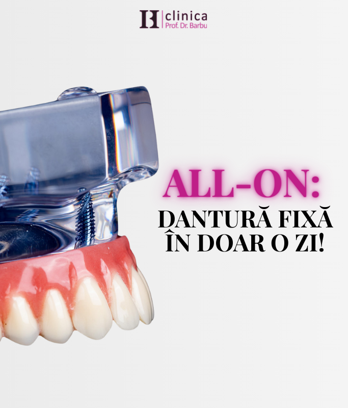 Principala diferență între implantul clasic și tehnica modernă “All on/Dinți într-o zi” este generată de numărul de implanturi utilizate, modul de poziționare și conectare rigidă a acestora între ele pentru a susține o arcadă dentară completă. În timp ce implanturile clasice au nevoie de un proces mai îndelungat de osteointegrare, opțiunea de dantura fixă All on/Dinți într-o zi sunt o soluție eficientă, rapidă și de durată pentru pacienți.